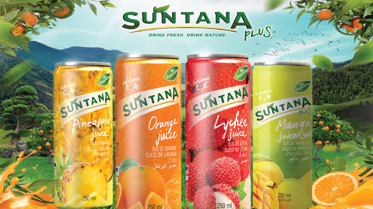 เครื่องดื่มจากธรรมชาติที่มีความสดชื่น เมื่อลองจินตนาการถึงภาพโอเอซิสที่อยู่ท่ามกลางทะเลทราย ให้นึกถึงน้ำผลไม้ซันทาน่า พลัส อีกทั้งเป็นสินค้าขายดีของทางบริษัท ปัจจุบันมียอดขายเป็นอันดับ 1 ในแถบตะวันตกและแอฟริกาตอนใต้ อีกทั้งเป็นน้ำผลไม้ที่ผลิต และปลูกในประเทศไทยแท้ 100% มากไปกว่านั้นเพื่อให้เกิดความแตกต่างจากตลาดคู่แข่งเราจึงใช้ผลไม้ส่วนที่เข้มข้น ปราศจากสารกันบูด และกลูเตน เพิ่มด้วยวิตามินต่างๆ จากธรรมชาติ อาทิเช่น วิตามินเอ ซี และอี